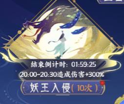 玩法规则:开启后以玩家个人为单位进行妖王挑战,根据造成的伤害领取奖励。每次结束后按照伤害排名发放奖励,开放期间20:00-20:30为奖励时间,期间对妖王造成的伤害会巨额提升