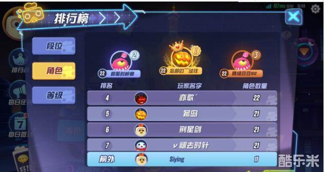 【角色排行榜】新增角色排行榜,按照玩家解锁的游戏角色数量进行排序。