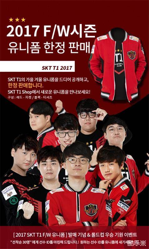 在目前的SKT战队官方商城中,这套全新的队服也已经开售,队服包括秋冬装的T恤和夹克,售价分别是55美元和88美元。前30名的客户可以选择自己喜欢的选手标签印在队服之上,目前新队服只有秋冬装设计,而且应该是为了支持队伍今年打进全球总决赛,而进行限量发售的特殊事件,因此也是具有纪念价值。