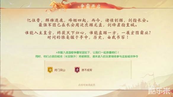 国都风云再起,战事一触即发,谁能够攻城略地入主皇宫?谁能够制霸一方获天下归心?6月1日起,全新的“逐鹿中原”玩法升级归来,邀各位少侠参与群雄逐鹿,攻城夺宝,奋力厮杀,抢夺丰厚赛季奖励,书写属于自己的历史!