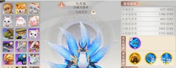 九尾狐:这是一只最高9变的宠物,先天技能能够给敌人造成冰冻和减速效果,契灵技能除了回光免疫濒死伤害,还有冰冻和增加九尾狐伤害的技能,这是一个平民也能够获得的宠物,小伙伴们可以从副本中挑战获得。