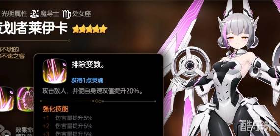 第1个技能排除变数,攻击敌人时,自身能获得一点灵魂,并且速攻值提升20%,比较常规的普攻技能,虽然附加有攻速值提升效果,但是没有其他影响。技能升级后也只能提高伤害量。第2个技能策动作战,这一技能效果就丰富了很多,能够捕捉目标,有很高几率解除目标身上两个强化效果,在两回合内造成标靶效果,使自身获得免疫,并且速攻值提升50%。