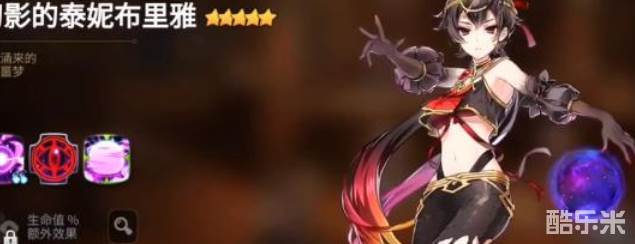 2.噩梦的幻影:若我方还有其他角色可被指定时,则对方无法锁定幻影的泰妮布里雅,我方角色阵亡时会提升自己的属性,攻击力和防御,最多叠加5次。