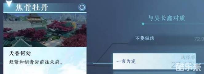 在进入以后,玩家会在朱府遇到一个选择题,这里选择哪个都是可以的,不会影响到大家最终的奇遇触发。
