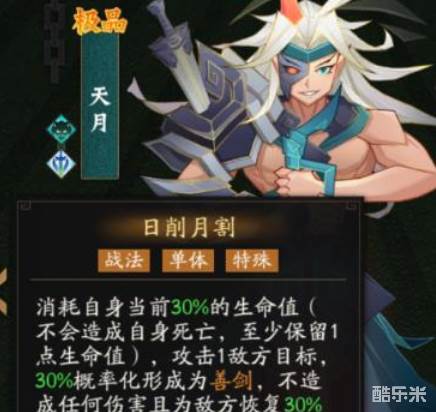 这个游戏中的强势角色有很多,这里就着重推荐其中的几位更为厉害的人物。首个要讲的是天月,他有着很强的输出能力。他的大招还是以单体伤害为主,主要的效果是会消耗自身3/10的血量,来攻击对方一名角色。