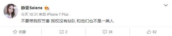 之后淘宝权的女朋友也发表微博表示:不要带我权节奏 我权没有站队 和他们也不是一类人