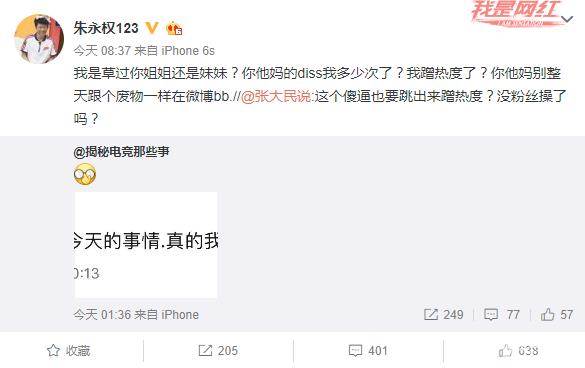 于是今天白天,淘宝权继续转发IM前翻译的微博并附言:你他妈的diss我多少次了?我蹭热度了?你他妈别整天跟个废物一样在微博bb