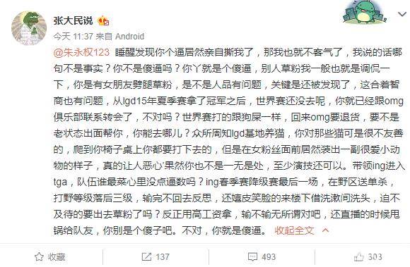 最后前IM翻译继续在微博中疑似曝光淘宝权劈腿X粉、LGD2015年夏季赛夺冠后还没打S5就想着转会OMG等事件。