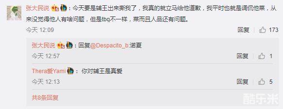 前IM翻译此前也在微博中经常调侃诺夏为辅王,于是也将诺夏和TBQ进行对比并附言:今天要是辅王出来撕我了,我真的就立马给他道歉,我平时也就是调侃他菜,从来没觉得他人有啥问题,但是tbq不一样,菜而且人品还有问题。