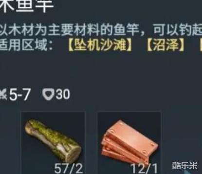 首先是游戏中鱼竿方面的制作,毕竟要在海边垂钓,获取鱼类资源产品的话,那么鱼竿必不可少。比现实中各类型高级的鱼竿制作材料以及特殊的用具,游戏中的鱼竿更是一种极简版本。玩家们需要两个木树枝以及铜制零件,就能制作成一个简易鱼竿,可谓是相当简单。