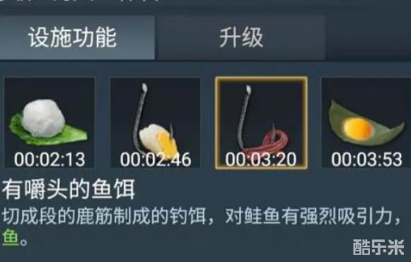 当然,钓鱼不仅还要钓鱼竿作为基础,另外还需要通过诱饵对鱼儿吸引,才能钓上鱼。除了制作鱼竿以外,还要制作一些钓鱼的饵料。这边建议用切成段的鹿筋制作的有嚼头的鱼饵用于钓鱼,虽然制作不菲,但收益很高,很容易能钓上大鱼,到时候一波收益绝对大于支出。