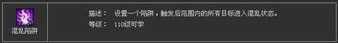 105级技能移花接木,感觉很猥亵的一个技能,把别人的有益状态偷到自己身上,娱乐无极限。110混乱陷阱,估计地球人都知道混乱很猥亵吧。