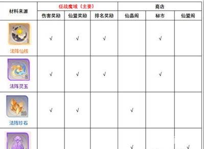 征战魔域是上述材料的主要来源,它位于仙盟-征战诸天-征战魔域