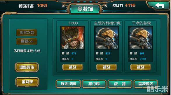 1.玩家安排好竞技场阵容和战舰技,与挑战的玩家进行碰撞。