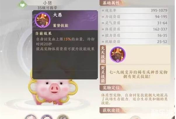 这个猪的先天技能叫大愚,效果就是每隔20秒回复自身血上限15%的血量。