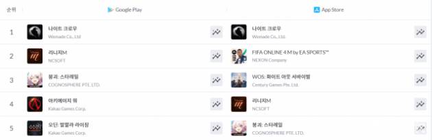 Play和苹果应用商店两大畅销榜的榜首位置仍然牢牢地控制在《夜鸦》的手中,已进入到了长期热销的状态。《夜鸦》的用户流量表现和首月销售额表现也相当不俗,据悉,其首月流水已突破 1亿美金大关,这在竞争激烈的韩国游戏市场堪称是具有统治力的市场表现。