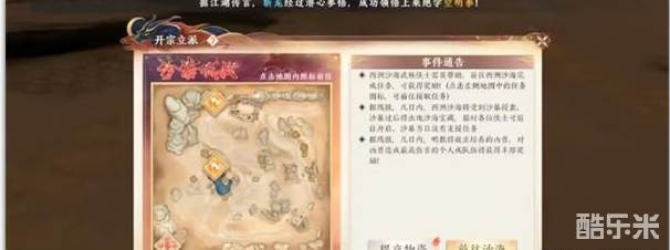 ②据线报,几日内,西洲沙海将受到沙暴侵袭,沙暴过后将出现沙海宝藏,届时各位侠士可前往开启。沙暴当日没有支援任务。