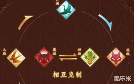 在游戏中大家点开角色种族,就能看到各种族之间的克制图,可以看到,其他四大种族的克制关系是一个相互克制的圈,只有魔和神这两族不在这个圈中,显得颇为不同,魔和神这两族是独立于四大族之外互相克制的种族。