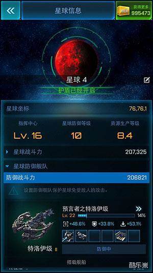 这里集中展示了指挥官星球的名称、坐标、指挥中心等级、防御等级、资源建筑平均等级、战斗力、防御舰队信息。