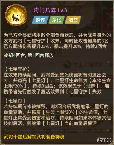 神诸葛亮:奇门八阵、七星连珠。强大的增益技能,提升武将伤害和暴击率,在输出武将之前出手,buff叠上,输出武将的输出岂不是更胜一筹?