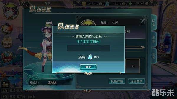 3、输入你的全新队伍名吧~(每次改名消耗100钻石)
