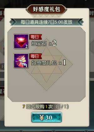最重要的是,连续30天的包月好感度礼包价格也是很平民呢。