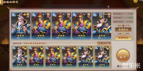 玩家升级武将技能需要消耗对应的技能点,技能点的获得途径有三个。第一个获得途径是通过转化武将获得技能点,武将等级越高转化得到的技能点越多。第二途径通过普通商店、远征商店、荣誉商店等购买获得,第三个途径是参与节日活动获得技能点。屯田、等级互换、资源改造等功能,都需要消耗对应的令书。令书每过1小时就能恢复一本,如果等不及自行恢复也可以花费金币兑换,60金币可以兑换3本令书。
