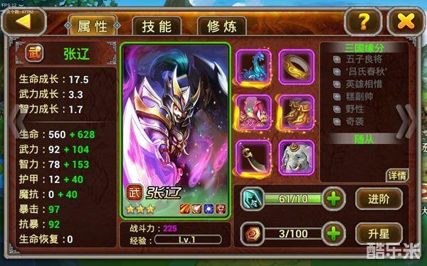 《X三国》武将属性介绍。属性作为武将最重要的部分,使用尽量简化的属性设计、整数和百分比显示、常见的属性名,如:武力、护甲、爆击。