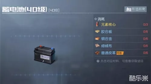 当大家等级升至40级后,便可成功解锁蓄电池了,之后大家只需要收集相应的材料合成即可获得。