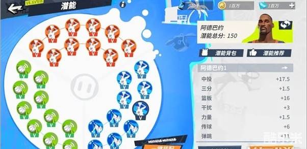 中锋在比赛中的主要作用是保护禁区和篮下进攻。装备潜能时,优先考虑能提升篮板、中投等方面的潜能,