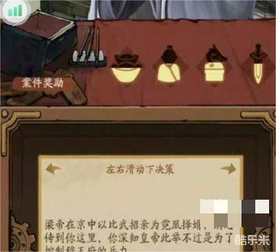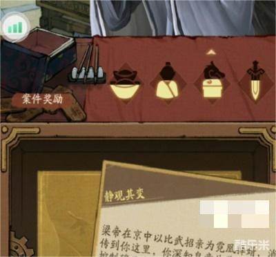 1、首先注意案件奖励的右边有元宝、半人像、龙符、宝剑,刚开局时三个均为半亮。