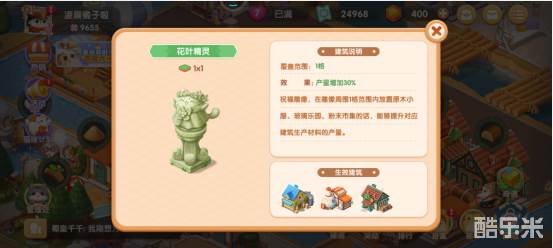 3、花叶精灵增益效果是对原木小屋,玻璃乐园、粉末市集提升30%;