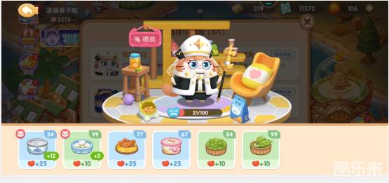 3、我们需要喂食猫咪猫粮来回复猫咪的体力(如果是猫咪喜爱的食物可以额外补充体力);