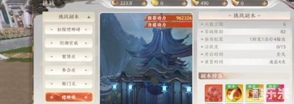 这是达到82级才会开放的挑战副本,建议功力指数达到96万左右再来战斗,这样才能扛住