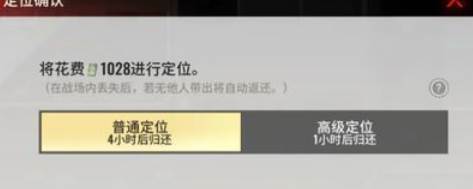 大家可以先去商城中去购买一个定位,装备定位它分为两种,一个是普通定位,还有一个是高级定位,普通定位需要花费1028货币来进行定位,它能让大家在战场上丢失的装备,要是没有别人带走的情况下,在四个小时之后归还,高级定位的话则会缩短这个时间,在一个小时就能归还回来了。