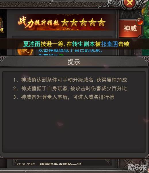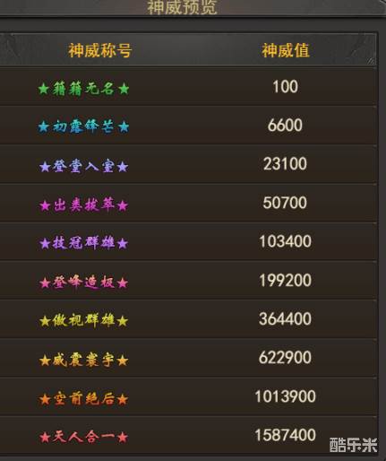 1、等级达到110级2、通过完成对应的任务获取神威值进行神威提升,获得属性加成3、攻击神威值低于自身的玩家,伤害可额外增加4、神威晋升登堂入室后,可进入神威排名