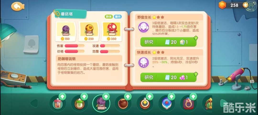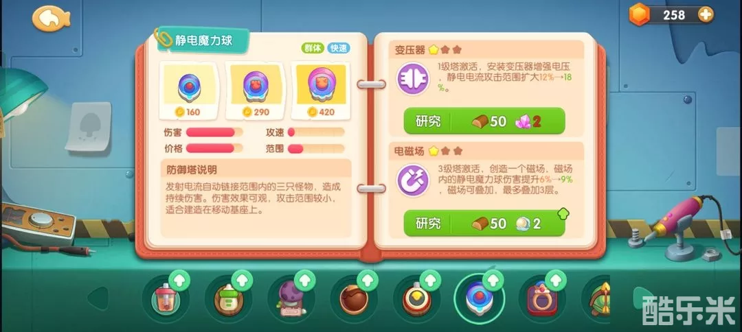 主要使用有以上两种,蘑菇塔适合怪物多群攻时使用,电力球也是如此,电离球攻击多个目标持续锁定性。