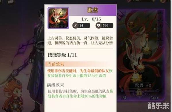 开服部分人练的角色,主要与风晴雪的二技能搭配,使队伍获得两回合的无敌+免疫。