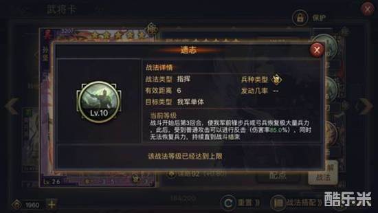 第三回合大量恢复前锋兵力,恢复的兵力取决于你前锋承受的伤害,具体数值他用一个极大量来代替。实测数值可以达到5000多兵力,当然这不算他的极限。然后就是在第三回合使前锋拥有反击能力,反击伤害加成也是十分爆表的。(只对步兵、弓兵有效)