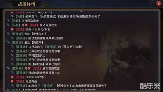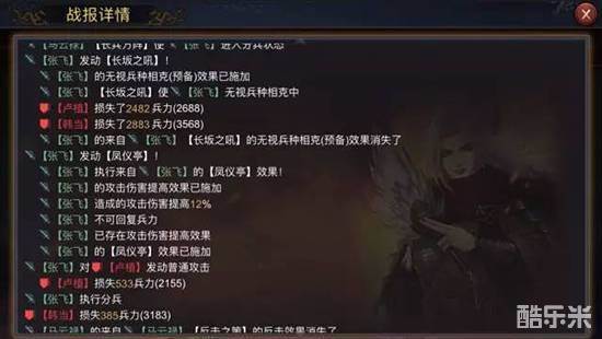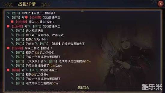 (这里运气不怎么好,前几回合这个战法都没有发动,也说明了这个战法的不稳定性。)