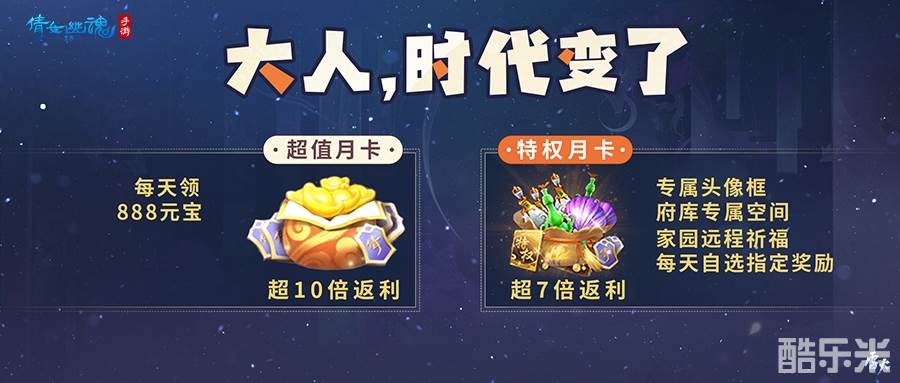 倩女手游推出全新特权月卡,将于6月19日全服上线!尊享超7倍福利返利,家园远程祈福、深夜持续在线、仙缘福袋三款道具每日自选、专属头像框……超多特权等你畅享,上新更有全服福利等你体验!特权月卡超值上线助战三界,小伙伴们速来一览~