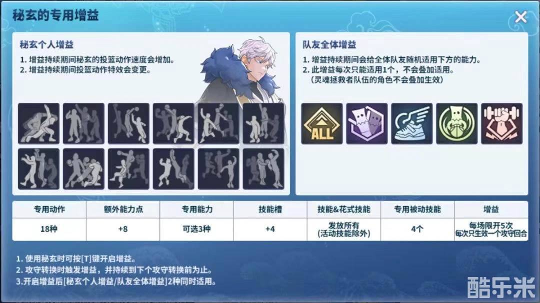 新的角色秘玄配合4月末的桃苑过人Freestyle 侧步突破,可以完美的衔接后续扣篮,让对手难以防守。强力BUFF也是大大的增加了命中率及身体对抗等各项辅助能力。可自行观看详细图片介绍。