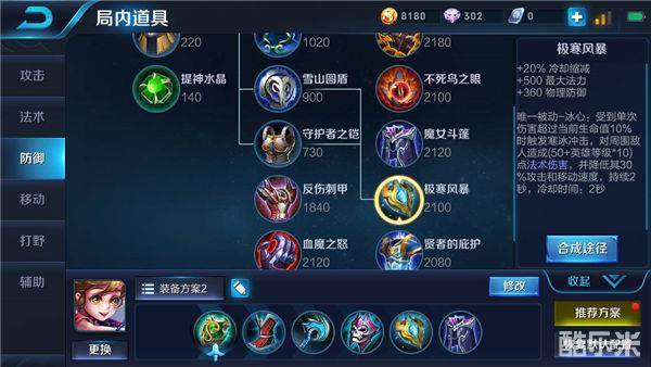 六神装:救赎之翼+冷静之靴+冰霜法杖+痛苦面具+极寒风暴+魔女斗篷