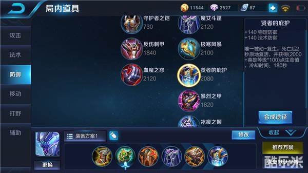 装备推荐:疾步之靴+救赎之翼+红莲斗篷+魔女斗篷+不祥征兆+贤者的庇护