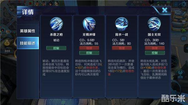 解析:被动给予韩信高额的攻速,使他成为打野热门英雄,第四次普攻可挑飞目标,相当于本身自带一个高频率的控制技能。