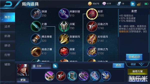 后期:冰痕之握增加韩信身板,使他面对高输出不容易被秒,被动配合韩信二技能留人逃跑都是不错的选择,破军则是为了提高韩信收割能力,使韩信一套就能切死对面后排。