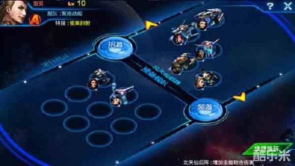 《银河争霸》游戏的操作比较简单,容易上手。在游戏关卡选择界面内,玩家可以随意移动自己战舰的位置,有比较大的自由度,能让你尽情在宇宙中遨游。战斗界面中,便是需要斗志斗勇的时刻了~只要你够机智就算是手残党也可以操作自如,战舰之间会自动作战,在头脑风暴的布阵之后你只需要静静的欣赏自己智慧的结晶---酷炫唯美的战斗画面即可。玩家通过自己的选择招募属于自己的舰队,每个舰队都有各自的属性,种类都主要分为:战斗型、坦克型和辅助型,随意选择搭配出完美的舰队。最重要的是玩家在9级的时候可以直接跳过游戏,对于像小编我这种拼命想最早成为大神的真是一个福音啊!