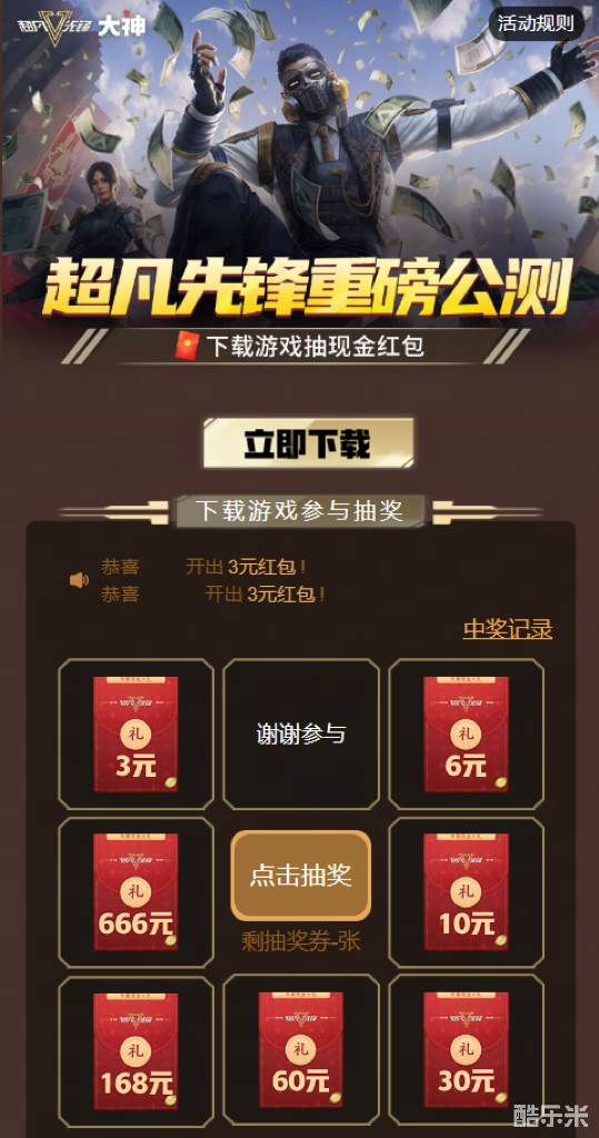 《超凡先锋》重磅公测!6月8日-7月9日,首次在大神APP搜索“大神超凡下载”,下载并登录《超凡先锋》后,即可获得1张现金红包抽奖券,最高可得666元现金红包!超多红包来袭,快上大神下载游戏速速领红包~