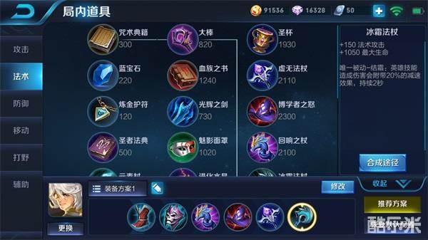 六神装:冷静之靴、痛苦面具、回响之杖、博学者之怒、虚无法杖、冰霜法杖
