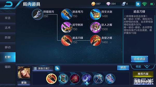 追击刀锋:虽然是一件打野装备,但是性价比非常高,低廉的价格能够帮助马可波罗获得高额的攻速。前期不要升级成贪婪之噬,太过于拖节奏。